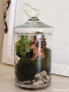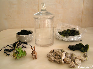 Mas podem decorar com o que tiverem por casa , pequenos cogumelos, casinhas ou até pessoas em miniatura . Não se esqueçam de não colocar o vosso terrário em locais com sol directo !